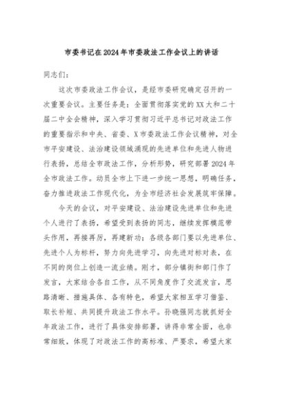 / 【七哥公文】2024年:市委书记在2024年市委政法工作会议上的讲话+更多免费公文+VX:QiGeGongWen2024