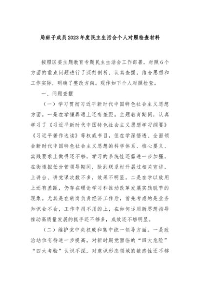/ 【七哥公文】2024年:局班子成员2023年度民主生活会个人对照检查材料+更多免费公文+VX:QiGeGongWen2024