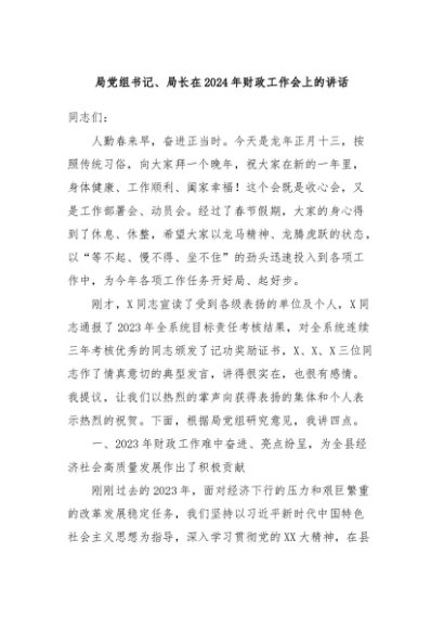 / 【七哥公文】2024年:局党组书记、局长在2024年财政工作会上的讲话+更多免费公文+VX:QiGeGongWen2024