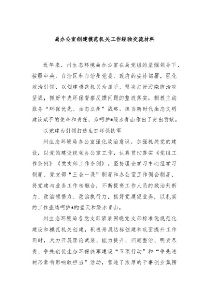 / 【七哥公文】2024年:局办公室创建模范机关工作经验交流材料+更多免费公文+VX:QiGeGongWen2024
