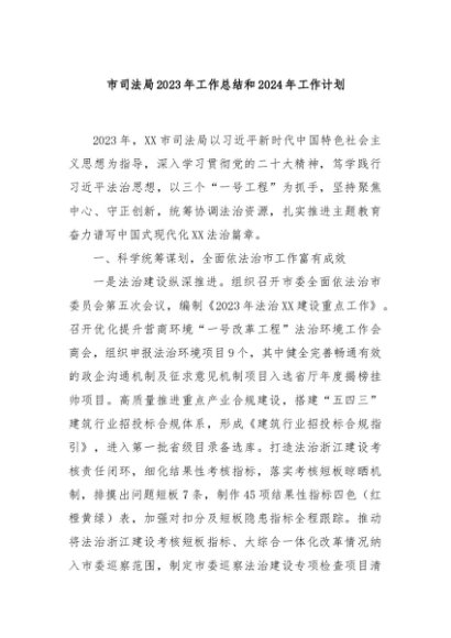/ 【七哥公文】2024年:市司法局2023年工作总结和2024年工作计划+更多免费公文+VX:QiGeGongWen2024