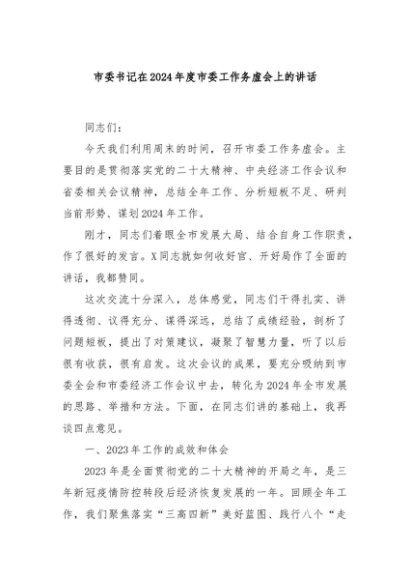 / 【七哥公文】2024年:市委书记在2024年度市委工作务虚会上的讲话+更多免费公文+VX:QiGeGongWen2024