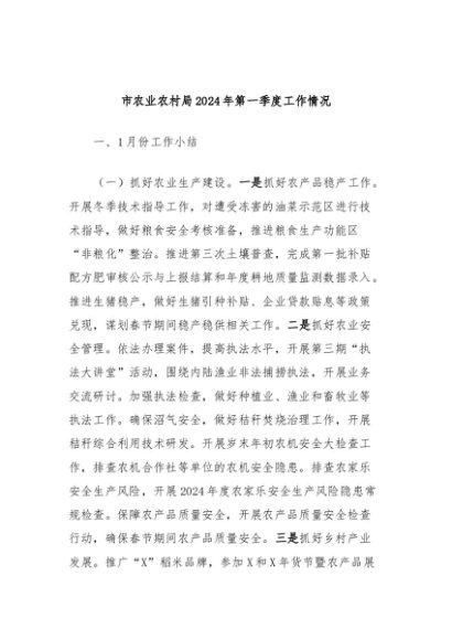 / 【七哥公文】2024年:市农业农村局2024年第一季度工作情况+更多免费公文+VX:QiGeGongWen2024