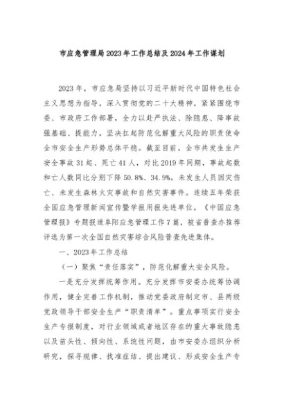 【七哥公文】2024年:市应急管理局2023年工作总结及2024年工作谋划+更多免费公文+VX:QiGeGongWen2024