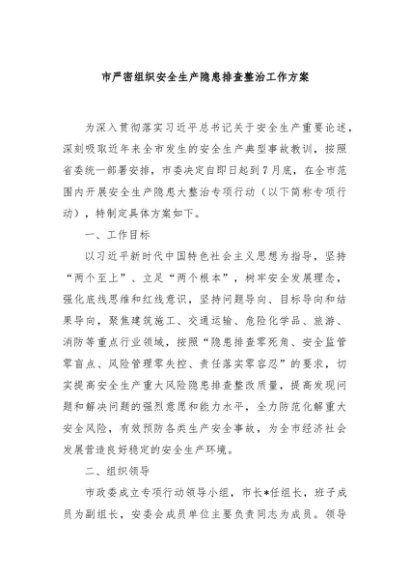 / 【七哥公文】2024年:市严密组织安全生产隐患排查整治工作方案+更多免费公文+VX:QiGeGongWen2024