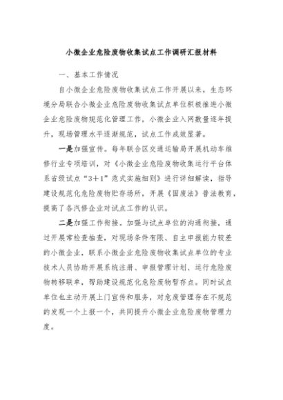 / 【七哥公文】2024年:小微企业危险废物收集试点工作调研汇报材料+更多免费公文+VX:QiGeGongWen2024