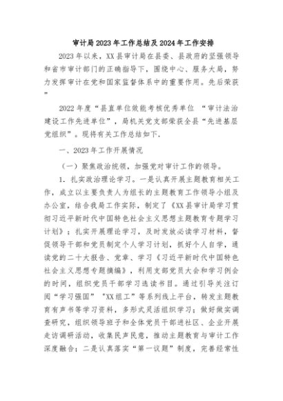 / 【七哥公文】2024年:审计局2023年工作总结及2024年工作安排+更多免费公文+VX:QiGeGongWen2024