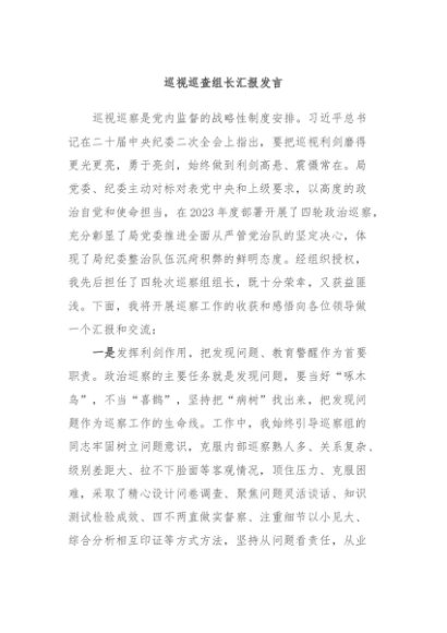 / 【七哥公文】2024年:巡视巡查组长汇报发言+更多免费公文+VX:QiGeGongWen2024