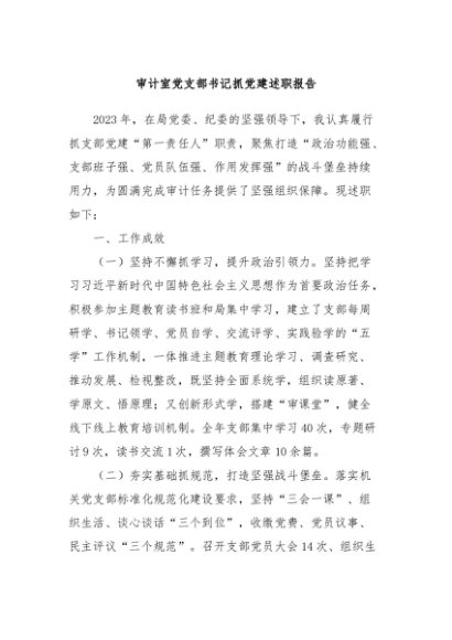 / 【七哥公文】2024年:审计室党支部书记抓党建述职报告+更多免费公文+VX:QiGeGongWen2024