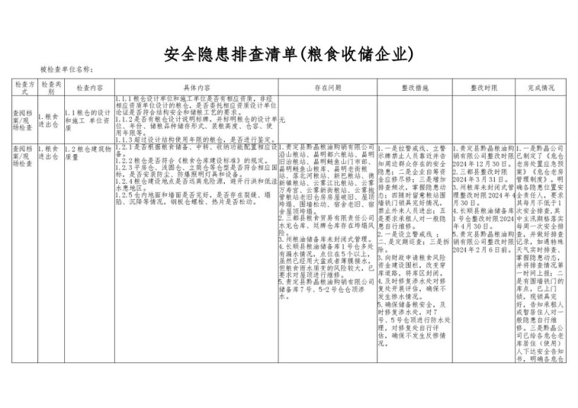 / 【七哥公文】2024年:安全隐患排查清单(粮食收储企业)+更多免费公文+VX:QiGeGongWen2024