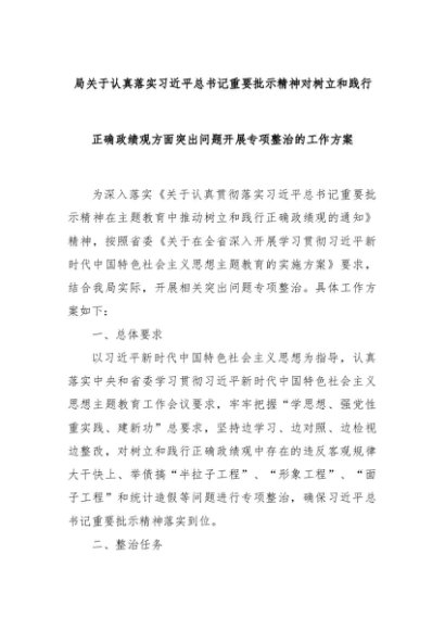 【七哥公文】2024年:局关于认真落实习近平总书记重要批示精神对树立和践行正确政绩观方面突出问题开展专项整治的工作方案+更多免费公文+VX:QiGeGongWen2024