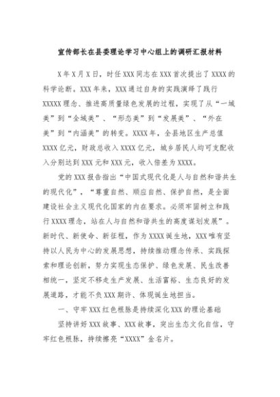 / 【七哥公文】2024年:宣传部长在县委理论学习中心组上的调研汇报材料+更多免费公文+VX:QiGeGongWen2024