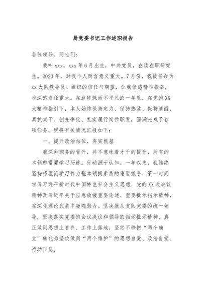 / 【七哥公文】2024年:局党委书记工作述职报告+更多免费公文+VX:QiGeGongWen2024