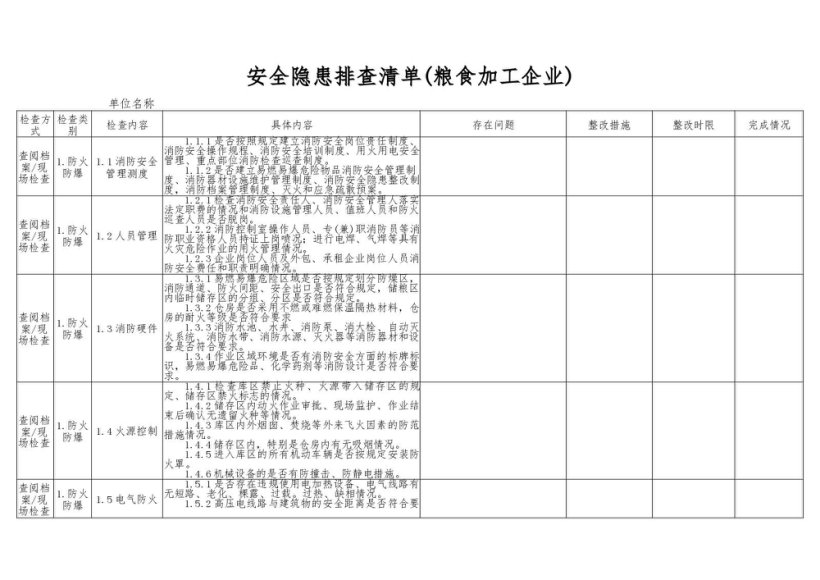 / 【七哥公文】2024年:安全隐患排查清单(粮食加工企业)+更多免费公文+VX:QiGeGongWen2024