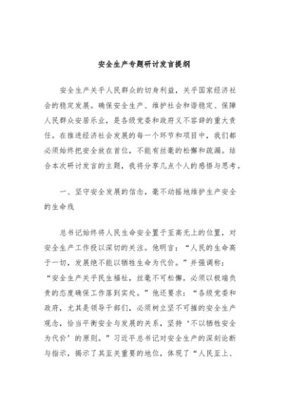 【七哥公文】2024年:安全生产专题研讨发言提纲+更多免费公文+VX:QiGeGongWen2024