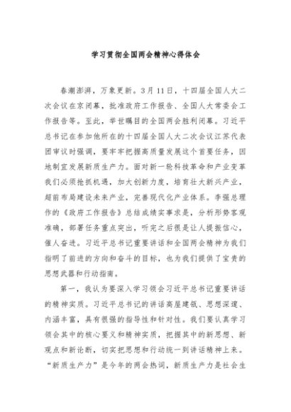 / 【七哥公文】2024年:学习贯彻全国两会精神心得体会+更多免费公文+VX:QiGeGongWen2024