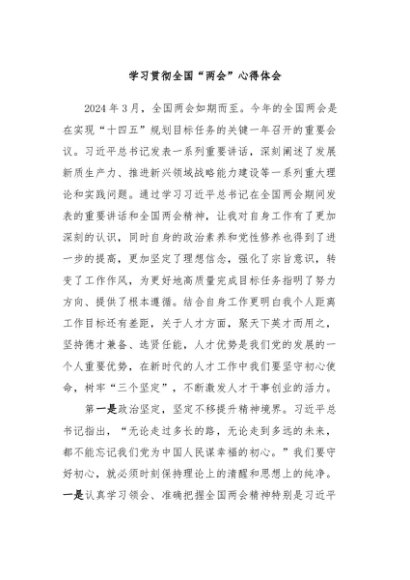 / 【七哥公文】2024年:学习贯彻全国“两会”心得体会+更多免费公文+VX:QiGeGongWen2024