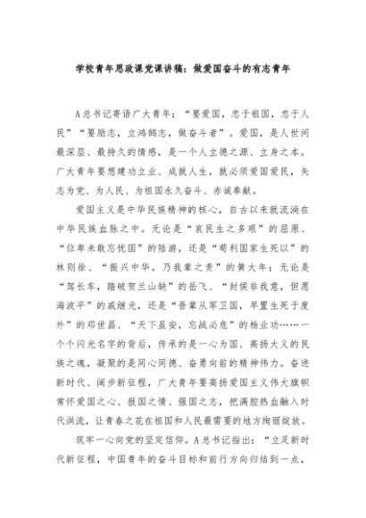 / 【七哥公文】2024年:学校青年思政课党课讲稿:做爱国奋斗的有志青年+更多免费公文+VX:QiGeGongWen2024