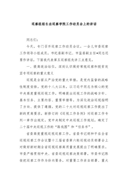 / 【七哥公文】2024年:巡察组组长在巡察学院工作动员会上的讲话+更多免费公文+VX:QiGeGongWen2024