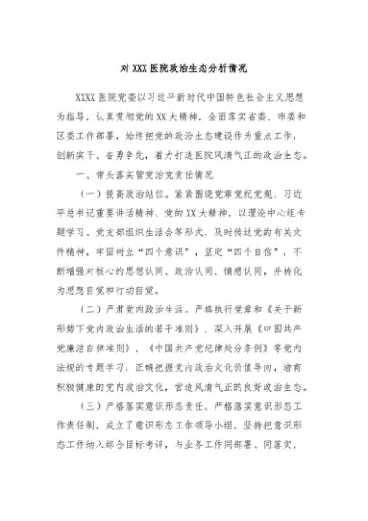 / 【七哥公文】2024年:对XXX医院政治生态分析情况+更多免费公文+VX:QiGeGongWen2024
