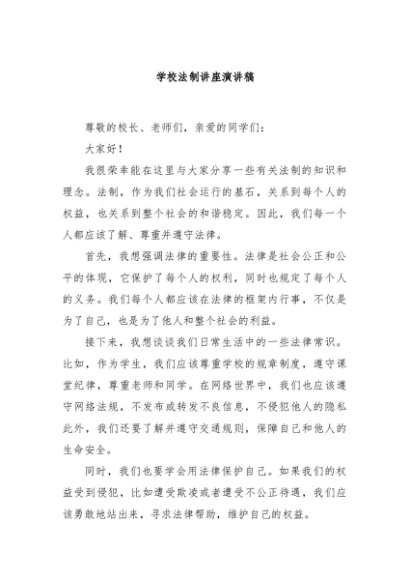 【七哥公文】2024年:学校法制讲座演讲稿+更多免费公文+VX:QiGeGongWen2024