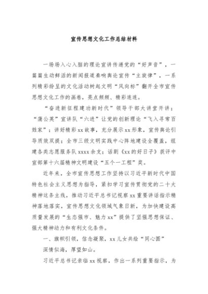 / 【七哥公文】2024年:宣传思想文化工作总结材料+更多免费公文+VX:QiGeGongWen2024