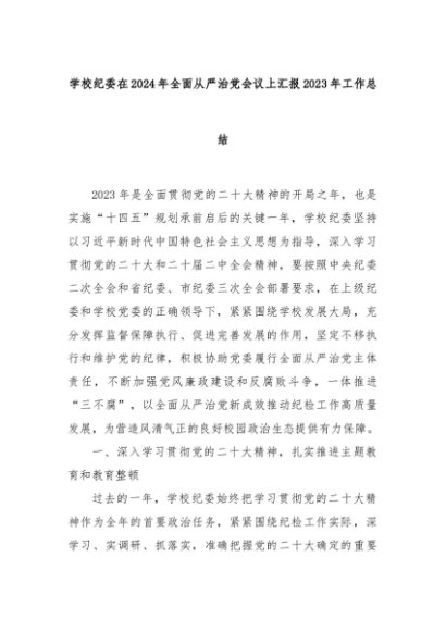【七哥公文】2024年:学校纪委在2024年全面从严治党会议上汇报2023年工作总结+更多免费公文+VX:QiGeGongWen2024