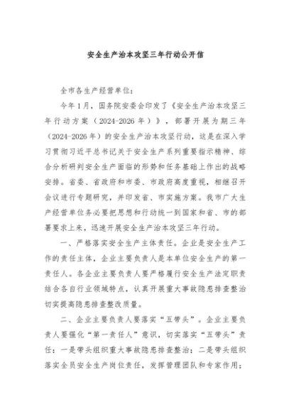 【七哥公文】2024年:安全生产治本攻坚三年行动公开信+更多免费公文+VX:QiGeGongWen2024