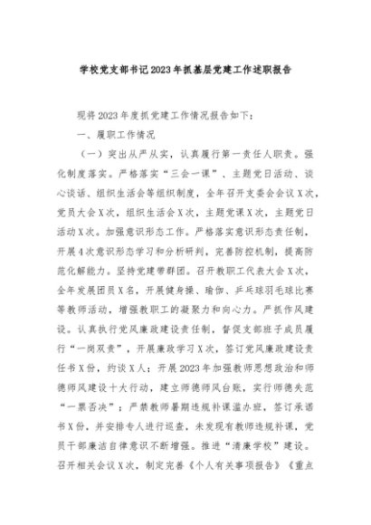 / 【七哥公文】2024年:学校党支部书记2023年抓基层党建工作述职报告+更多免费公文+VX:QiGeGongWen2024