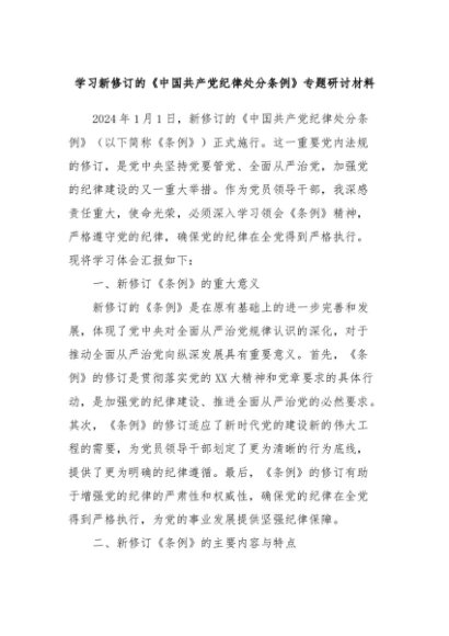 【七哥公文】2024年:学习新修订的《中国共产党纪律处分条例》专题研讨材料+更多免费公文+VX:QiGeGongWen2024