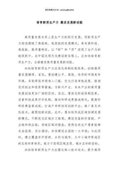 / 【七哥公文】2024年:培育新质生产力 激活发展新动能+更多免费公文+VX:QiGeGongWen2024