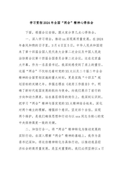/ 【七哥公文】2024年:学习贯彻2024年全国“两会”精神心得体会+更多免费公文+VX:QiGeGongWen2024