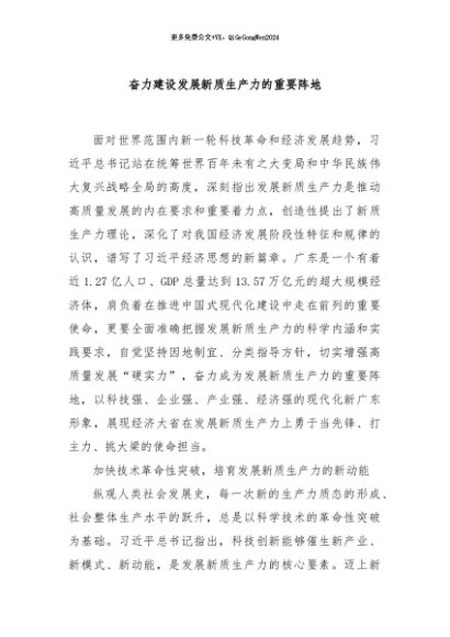 / 【七哥公文】2024年:奋力建设发展新质生产力的重要阵地+更多免费公文+VX:QiGeGongWen2024