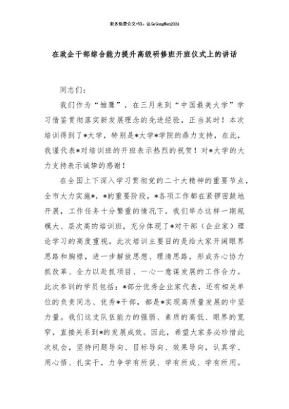 / 【七哥公文】2024年:在政企干部综合能力提升高级研修班开班仪式上的讲话+更多免费公文+VX:QiGeGongWen2024