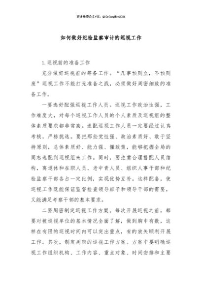 / 【七哥公文】2024年:如何做好纪检监察审计的巡视工作+更多免费公文+VX:QiGeGongWen2024
