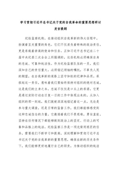 【七哥公文】2024年:学习贯彻习近平总书记关于党的自我革命的重要思想研讨发言提纲+更多免费公文+VX:QiGeGongWen2024