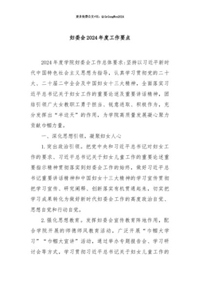 / 【七哥公文】2024年:妇委会2024年度工作要点+更多免费公文+VX:QiGeGongWen2024