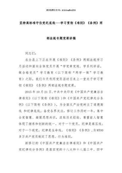 【七哥公文】2024年:坚持高标准守住党纪底线---学习贯彻《准则》《条例》两部法规专题党课讲稿+更多免费公文+VX:QiGeGongWen2024