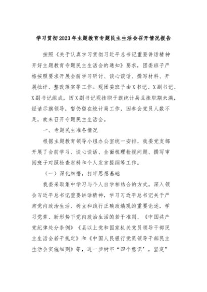 【七哥公文】2024年:学习贯彻2023年主题教育专题民主生活会召开情况报告+更多免费公文+VX:QiGeGongWen2024