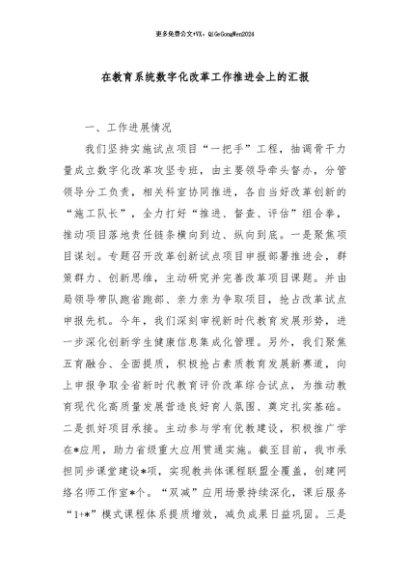 / 【七哥公文】2024年:在教育系统数字化改革工作推进会上的汇报+更多免费公文+VX:QiGeGongWen2024