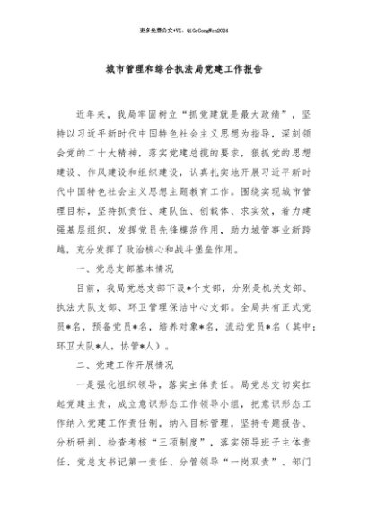 / 【七哥公文】2024年:城市管理和综合执法局党建工作报告+更多免费公文+VX:QiGeGongWen2024