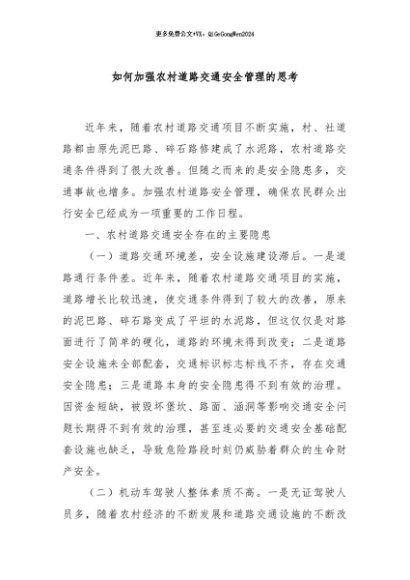 / 【七哥公文】2024年:如何加强农村道路交通安全管理的思考+更多免费公文+VX:QiGeGongWen2024