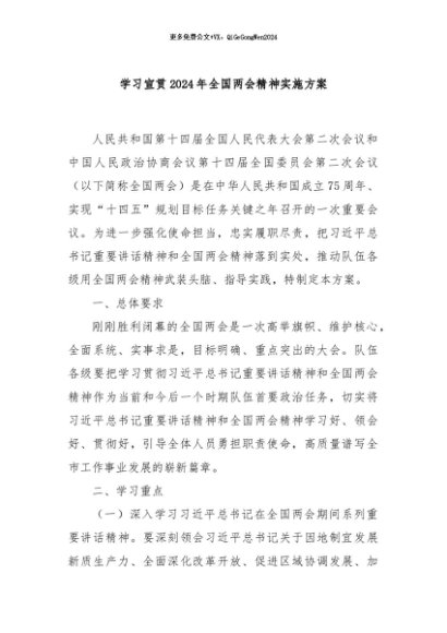 / 【七哥公文】2024年:学习宣贯2024年全国两会精神实施方案+更多免费公文+VX:QiGeGongWen2024