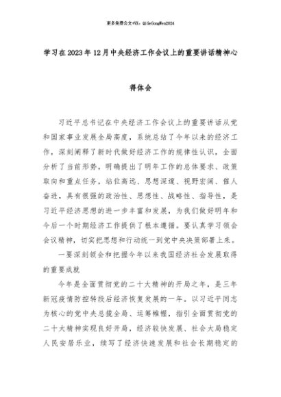 【七哥公文】2024年:学习在2023年12月中央经济工作会议上的重要讲话精神心得体会+更多免费公文+VX:QiGeGongWen2024
