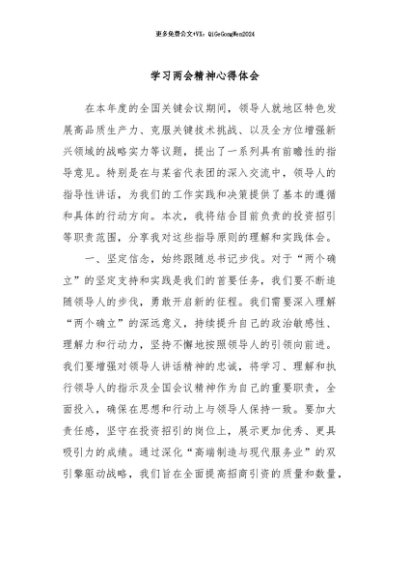 【七哥公文】2024年:学习两会精神心得体会+更多免费公文+VX:QiGeGongWen2024