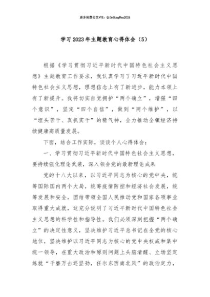 【七哥公文】2024年:学习2023年主题教育心得体会(5)+更多免费公文+VX:QiGeGongWen2024