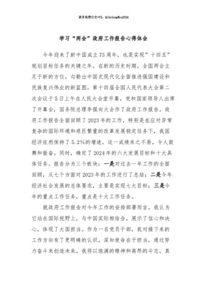 / 【七哥公文】2024年:学习“两会”政府工作报告心得体会+更多免费公文+VX:QiGeGongWen2024