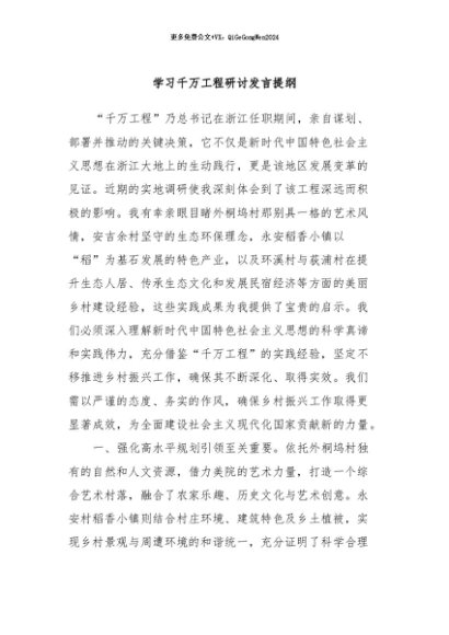 / 【七哥公文】2024年:学习千万工程研讨发言提纲+更多免费公文+VX:QiGeGongWen2024
