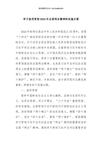 / 【七哥公文】2024年:学习宣传贯彻2024年全国两会精神的实施方案+更多免费公文+VX:QiGeGongWen2024