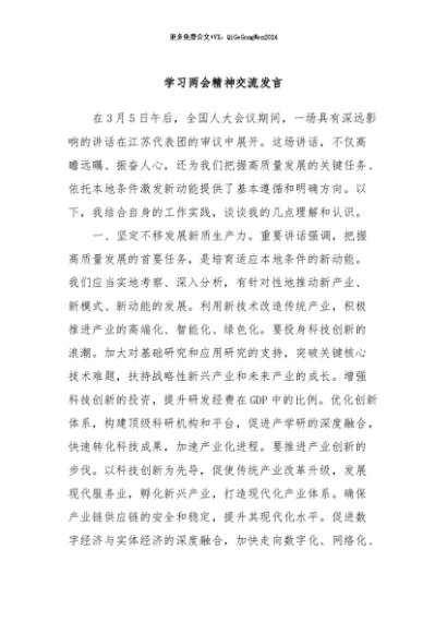 / 【七哥公文】2024年:学习两会精神交流发言+更多免费公文+VX:QiGeGongWen2024